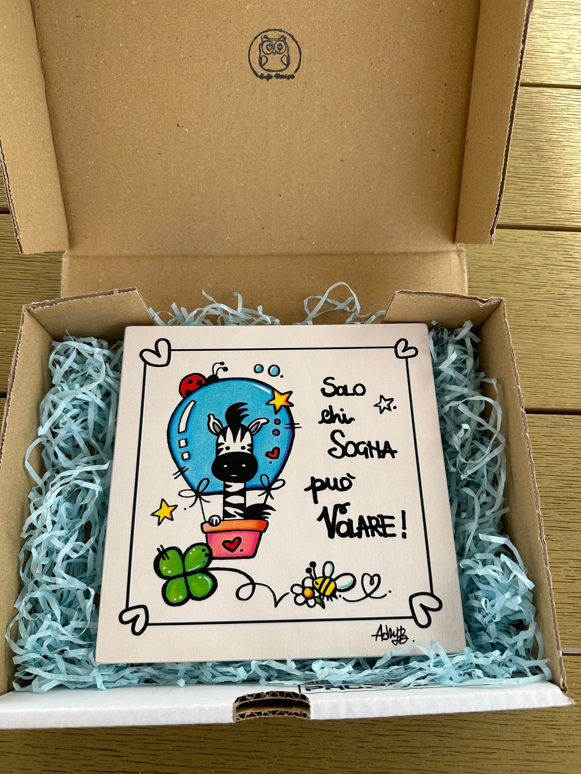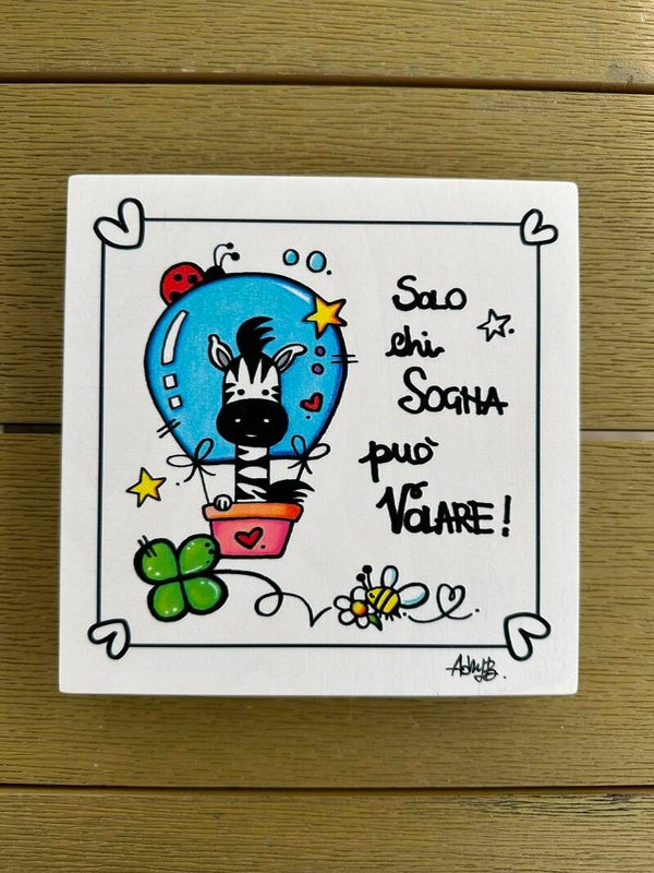 Quadro in legno serigrafato artigianalmente e ritoccato a mano. I quadretti sono materici in quanto tutti i profili e le scritte sono a rilievo.