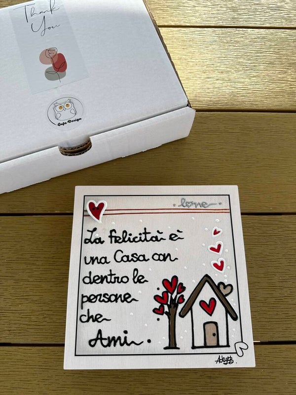 Quadro in legno serigrafato artigianalmente e ritoccato a mano. I quadretti sono materici in quanto tutti i profili e le scritte sono a rilievo.