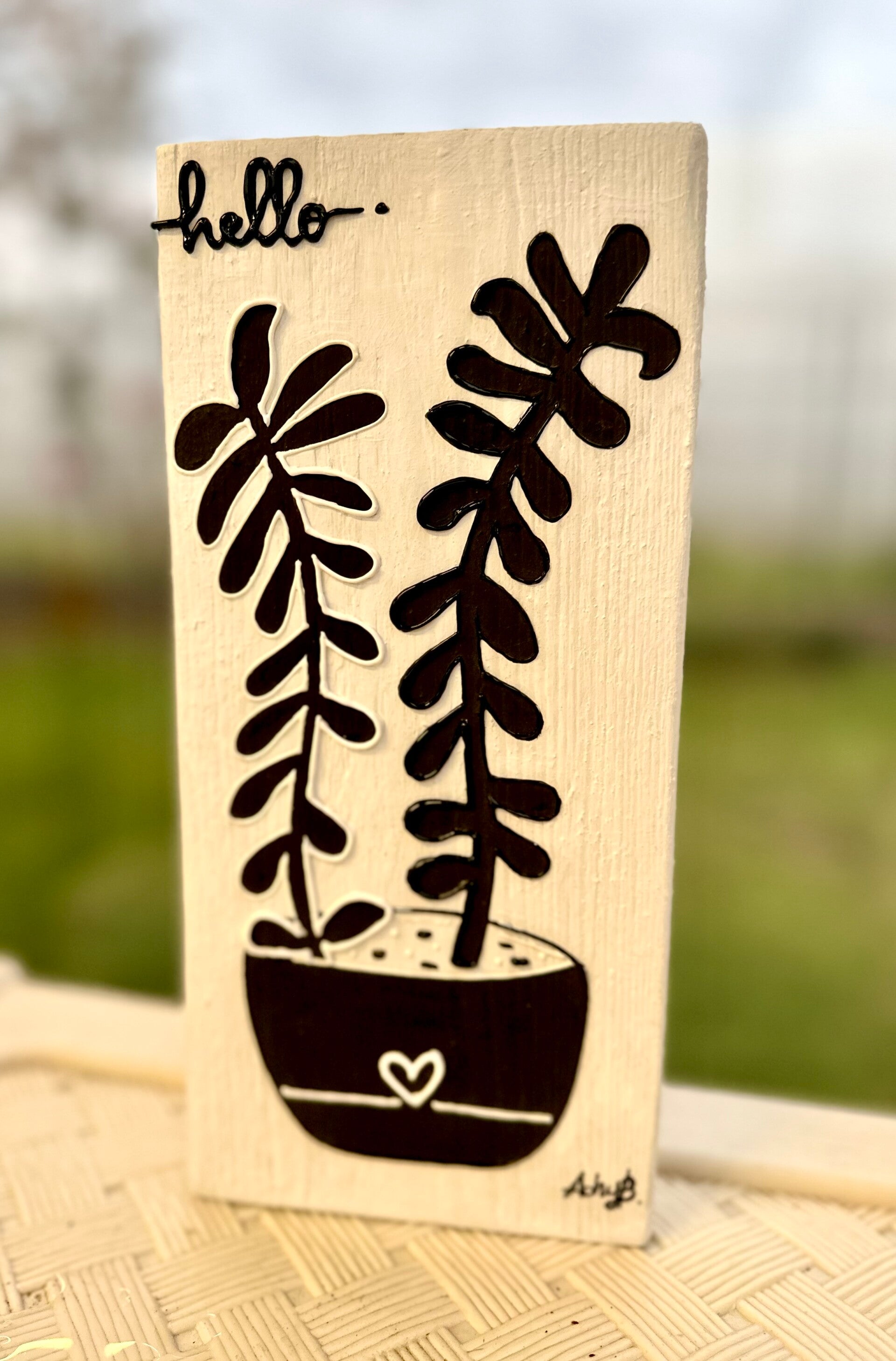 Quadro dipinto a mano su Legno di Abete, venato effetto Vintage, colori acrilici, profili a rilievo materici.