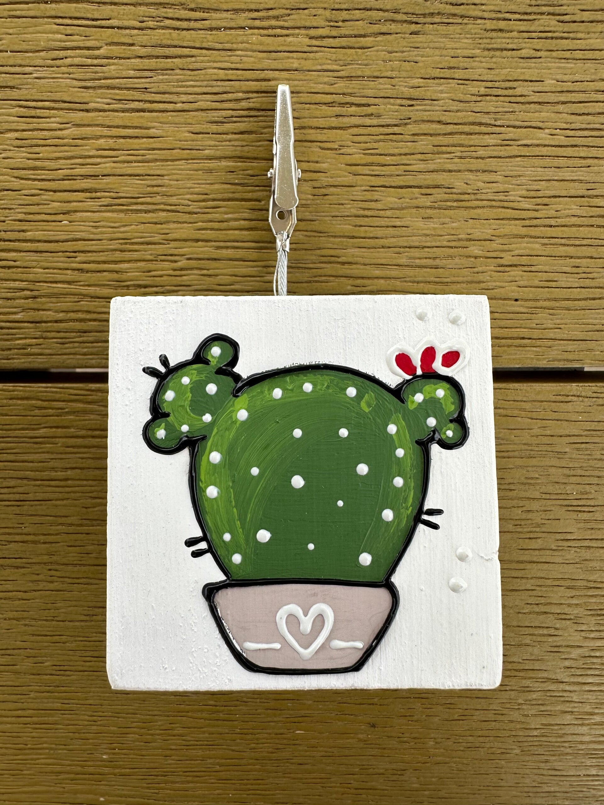 Piantina grassa dipinta con colori acrilici e profili a rilievo.
