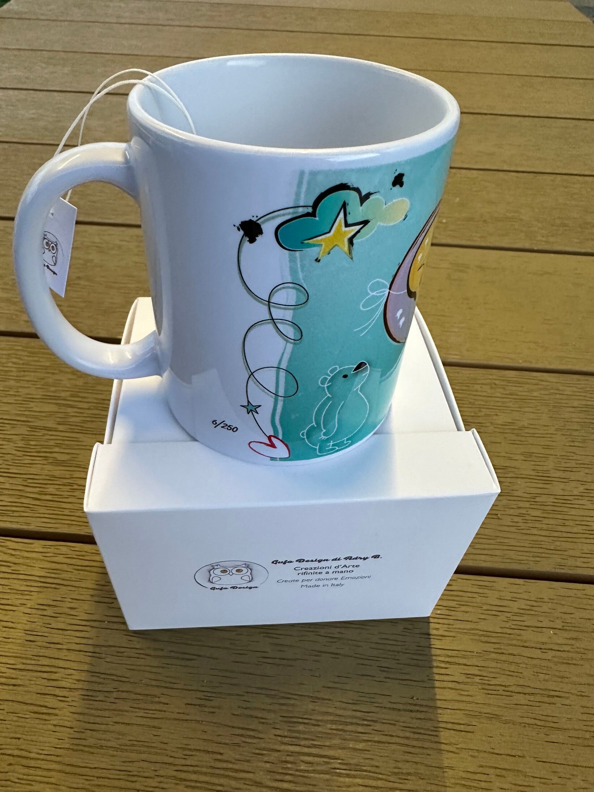 La tazza è numerata perché è una collezione limitata esclusiva disegnata da AdryB Gufo Design.