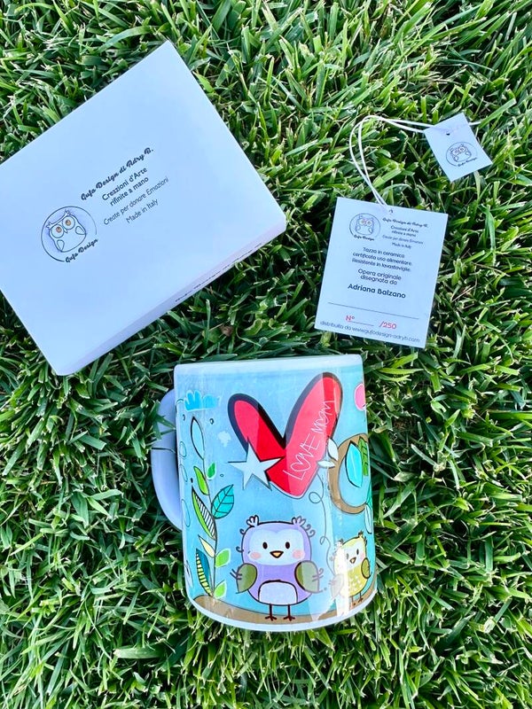 La tazza è numerata perché è una collezione limitata esclusiva disegnata da AdryB Gufo Design.