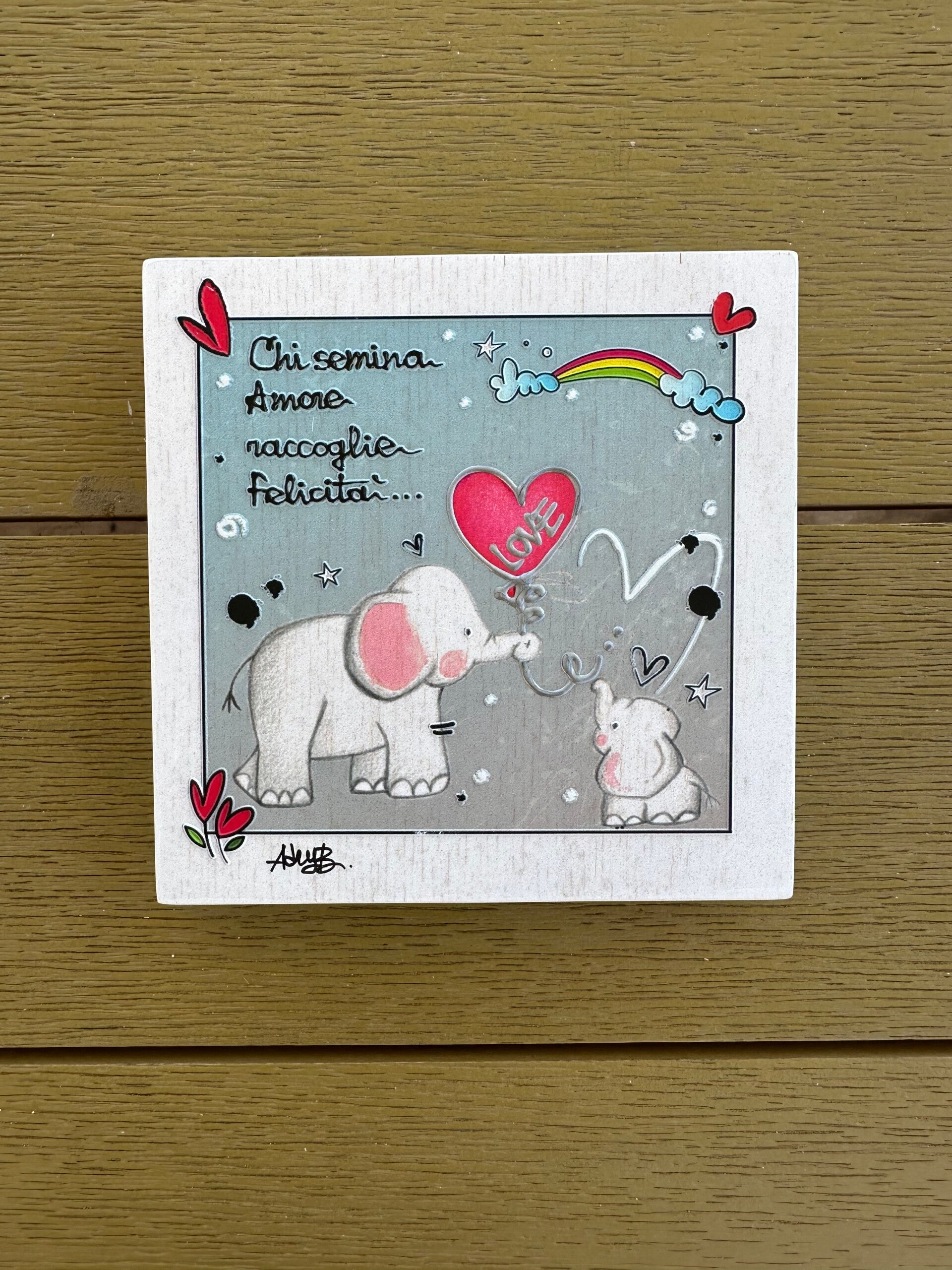 Quadro in legno serigrafato artigianalmente e ritoccato a mano. I quadretti sono materici in quanto tutti i profili e le scritte sono a rilievo.