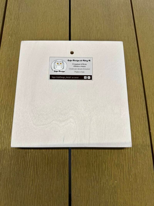 Puoi richiedere una breve dedica, che verrà scritta a mano sul retro del quadretto.