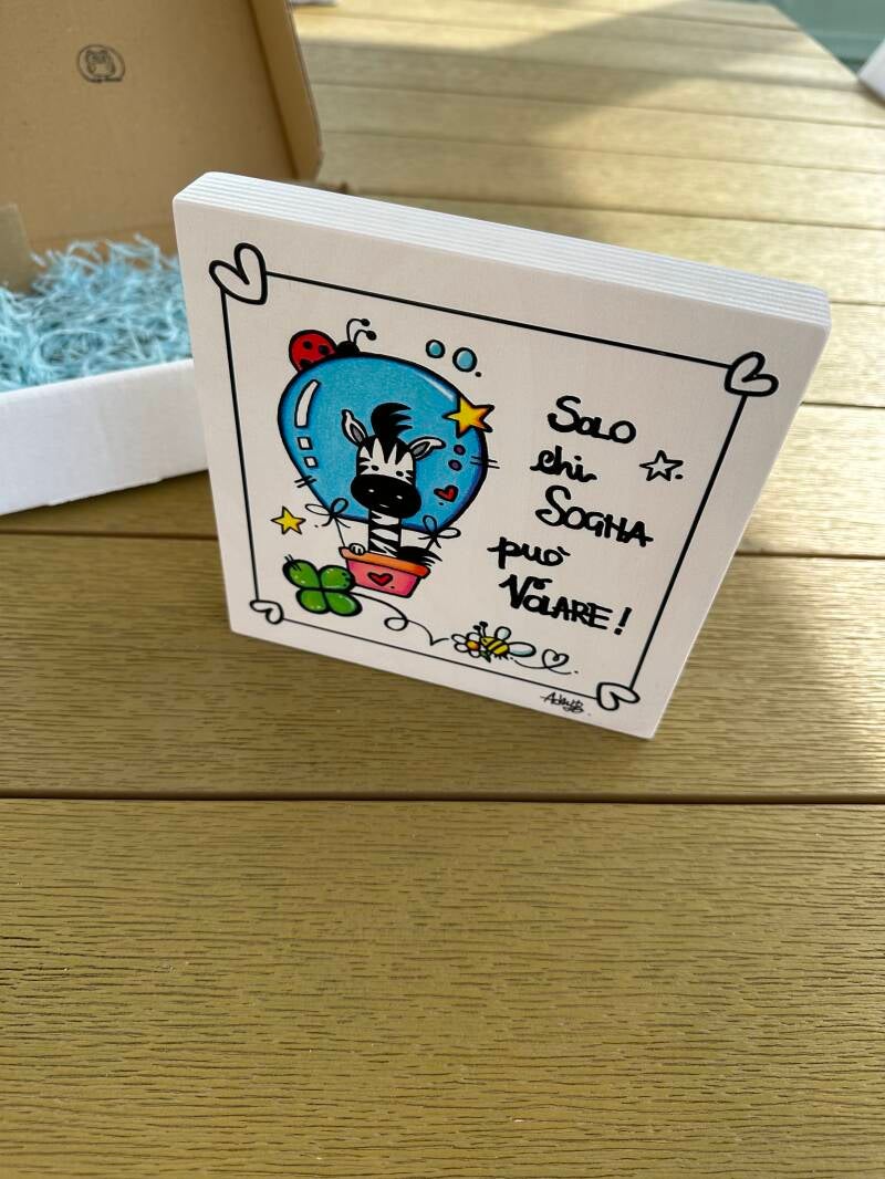 Quadro in legno serigrafato artigianalmente e ritoccato a mano. I quadretti sono materici in quanto tutti i profili e le scritte sono a rilievo.