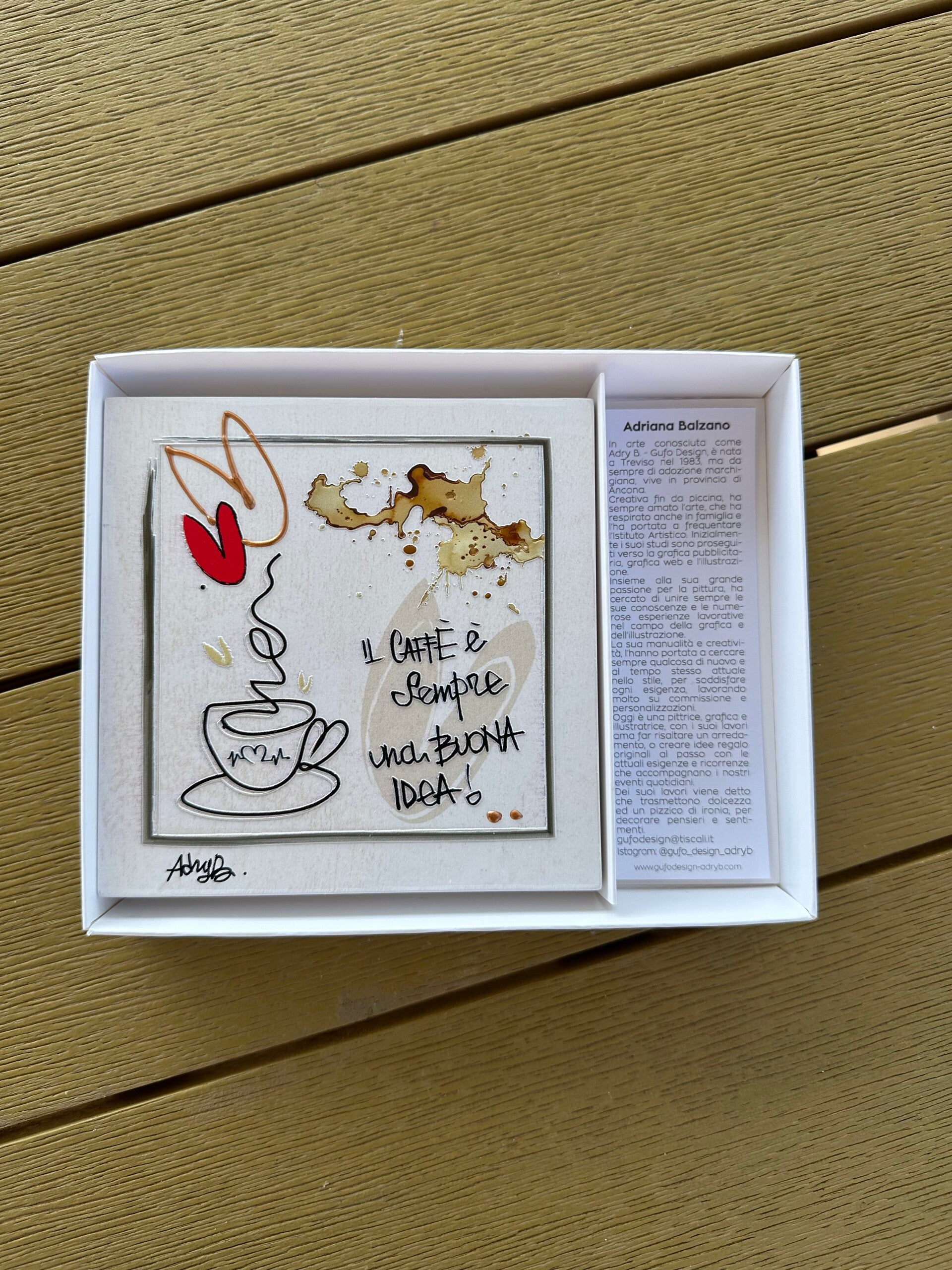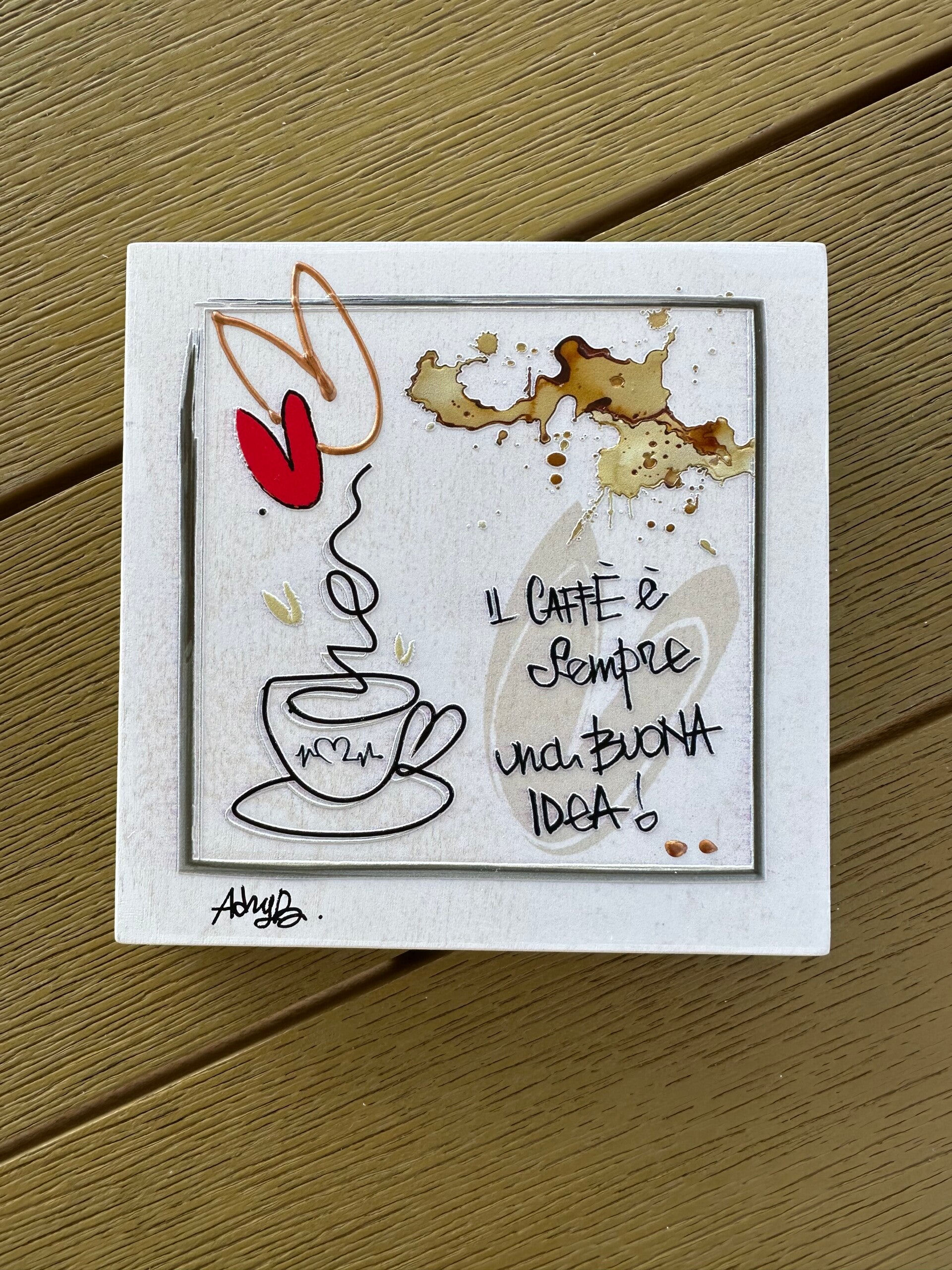 Quadro in legno serigrafato artigianalmente e ritoccato a mano. I quadretti sono materici in quanto tutti i profili e le scritte sono a rilievo & sono unici nel loro genere.